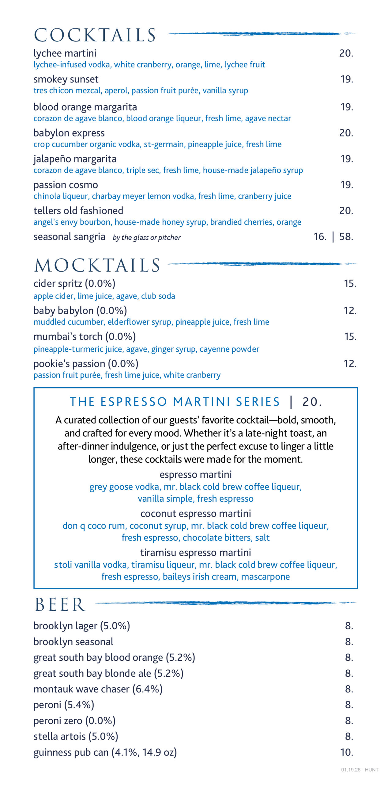 *Please inform us of any food allergies before ordering. Specials may only be available on certain days of the week and are subject to change at any time. Prices and availability of regular menu items are also subject to change at any time.